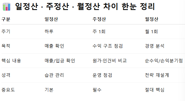 요식업에서는 일정산 · 주정산 · 월정산을 어떻게 관리하느냐에 따라가게의 생존력이 완전히 달라집니다.