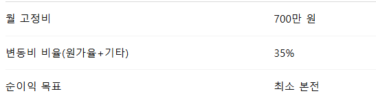 → 목표 매출은 최소 1,300~1,500만 원 설정