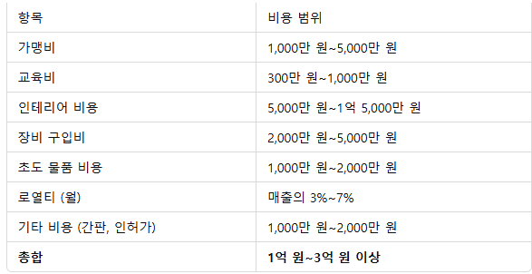 1. 높은 초기 비용: 가맹비, 인테리어, 로열티로 초기 부담 증가