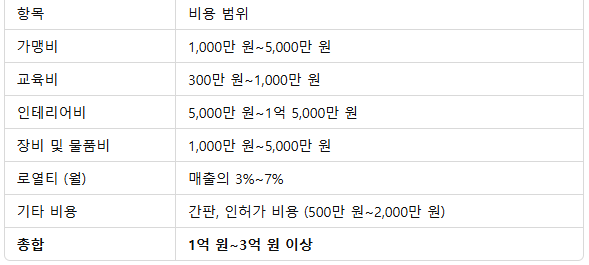 📊 프랜차이즈 가맹점 창업 비용 예시