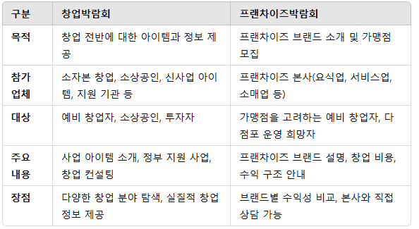 ✅ 창업박람회와 프랜차이즈박람회의 차이점
